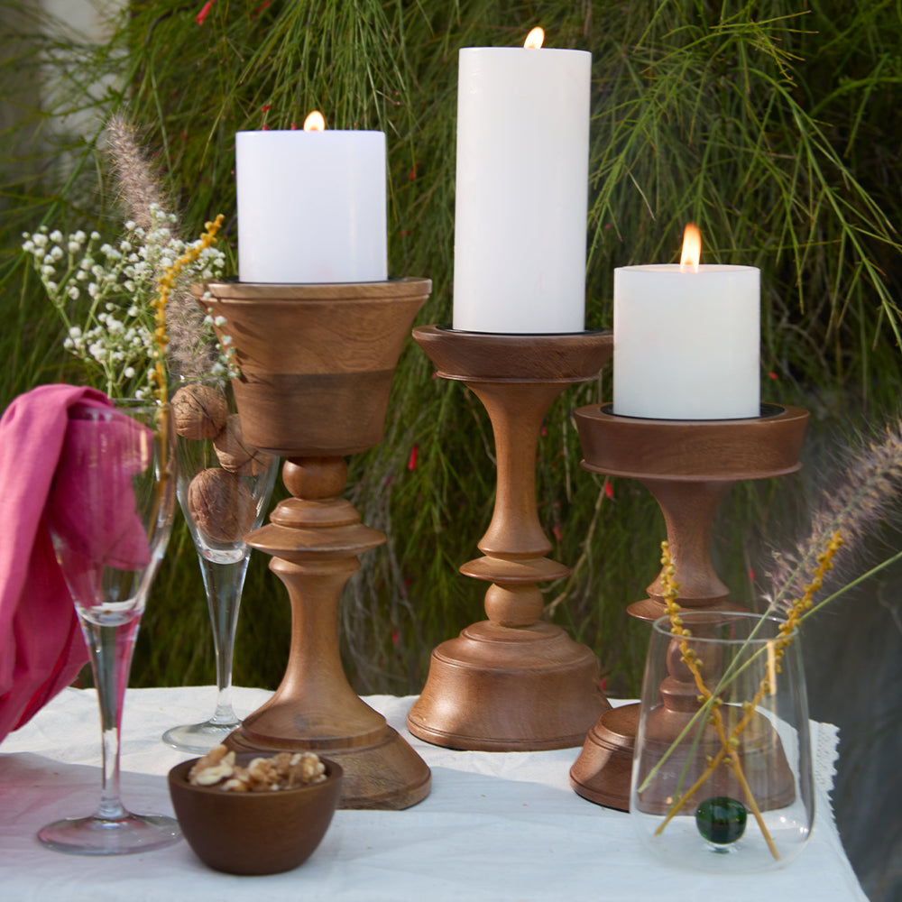 - Cluster 3-5 candles (same colour but different heights) on a tray with a few pinecones or baubles around them.