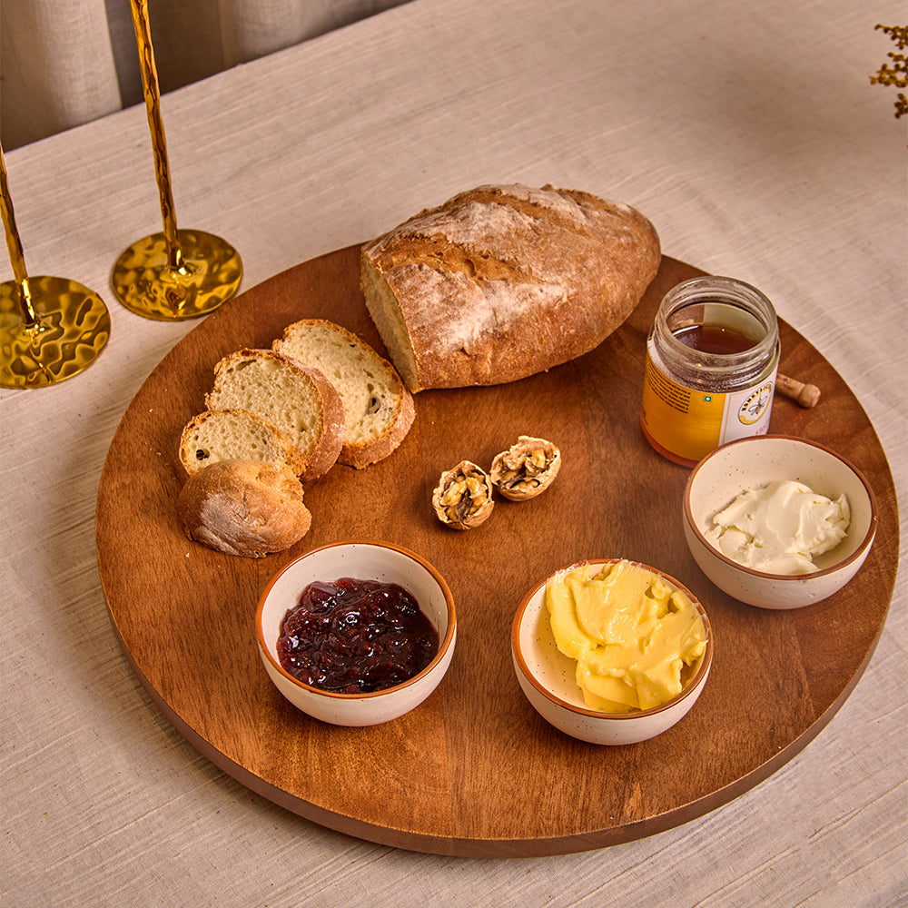 Perfect for serving everything from artisanal breads to festive treats - Kage round platter gives a traditional edge to your hosting game. Elevate your hosting essentials with designer serveware from Amaara Home.