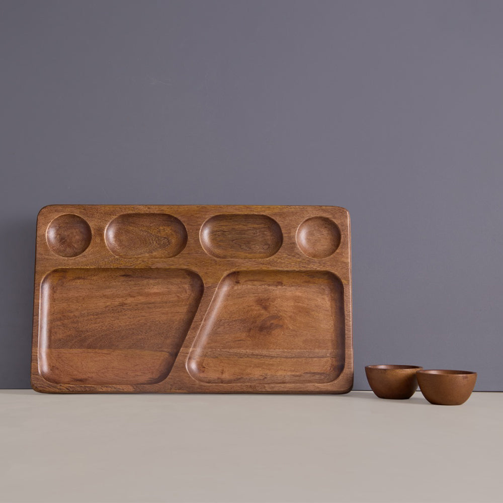 A. A wooden tray is known to add a rustic charm to your dining space. And a ceramic or metal tray is ideal for modern yet sophisticated dinner parties with friends and family.